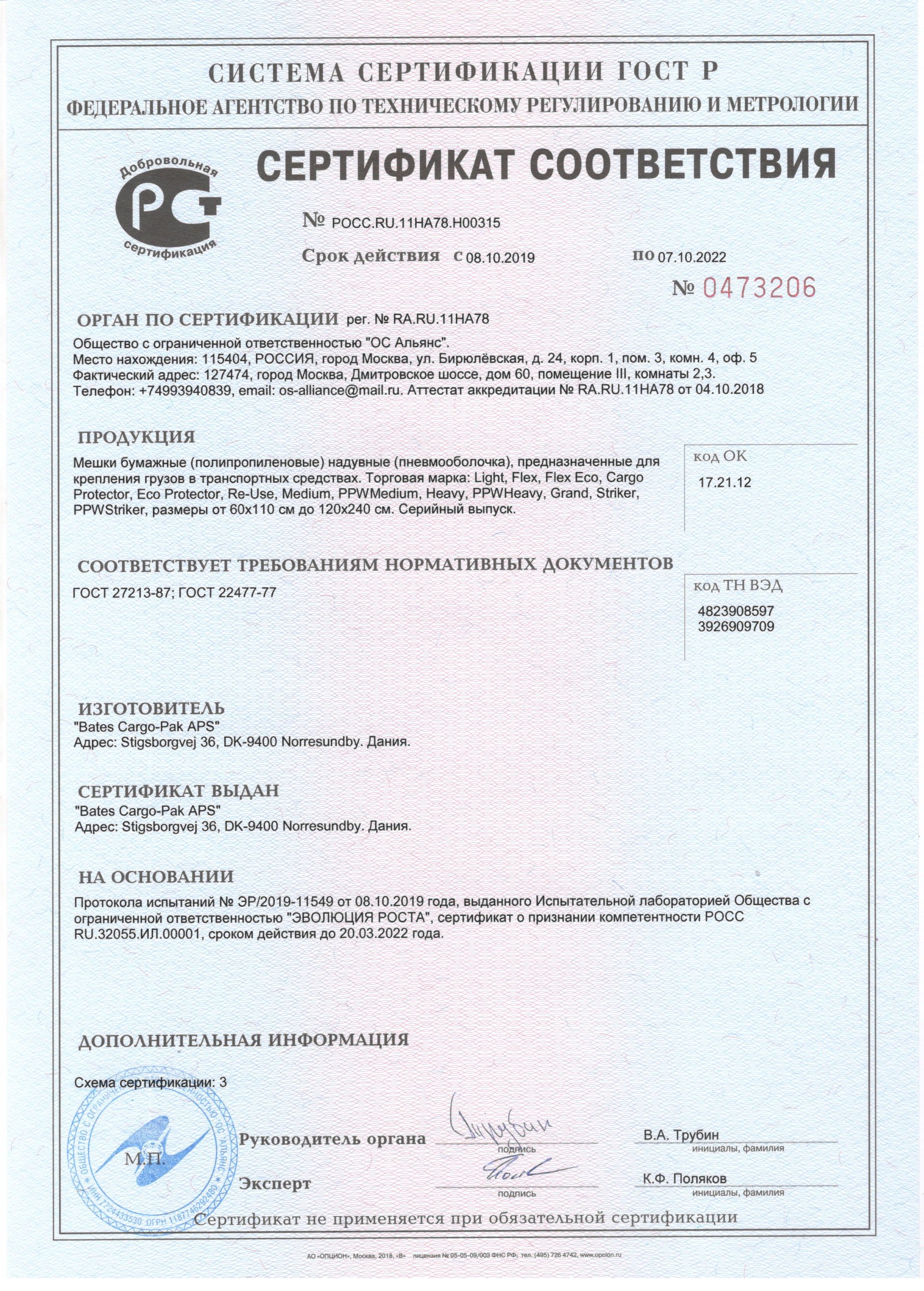 - Air cushions / dunnage bags